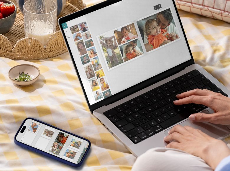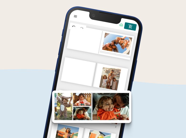 Rivstarta designprocessen. Ladda upp ett gäng bilder eller ett helt album, så placerar vårt smarta verktyg in dem i en snygg fotobokslayout - redo för dig att finjustera precis som du vill ha det.