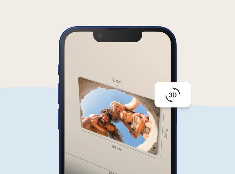 Se din väggdekoration i en realistisk 3D-miljö och få en känsla för tavlans storlek, tjocklek och finish.