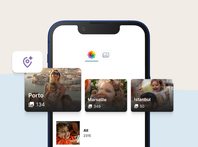 Slipp scrollandet. Vårt verktyg hittar bilder från dina senaste resor i kamerarullen och förvandlar dem till färdiga album för din fotobok.
