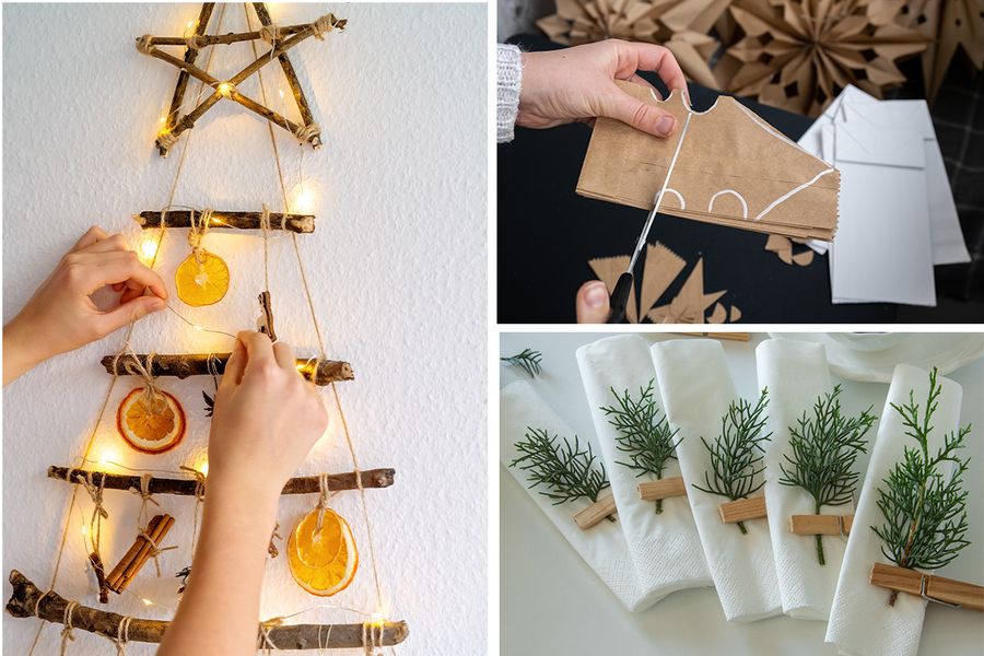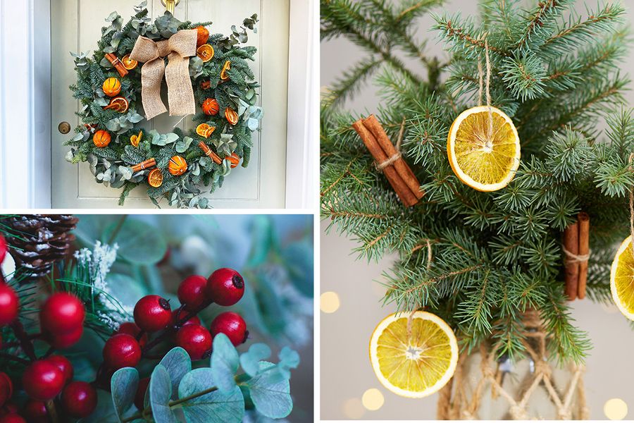 Ibland kan de enklaste juldekorationerna vara de mest effektfulla. Gröna juldekorationer som färska eukalyptuskvistar eller torkade apelsinskivor med kanelstänger är vackra, doftar ljuvligt och måste inte nödvändigtvis plockas ner på Tjugondag knut. Dessutom är de miljövänliga och hållbara – dubbel bonus.